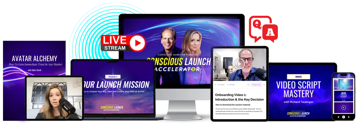 BONUS 1: Conscious AI Amplifer Workshop Training w/ Richard Taubinger and Kylie Slavik – These will be two additional LIVE 75 -minute trainings where we will cover how to use ChatGPT, Manus, Grammarly, and other AI tools in your launch creation.